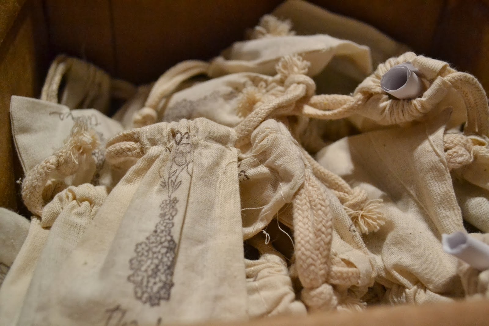 We tied the name tags to our favors that would be left at each place setting (little bags of wildflower seeds with a little poem we made up and had printed by another Etsy seller) and added the final table numbers a few days before the wedding when we were confident enough that it wouldn't change again. Then we bagged up the favors by table and left them with the decorations that would be put out by the caterers the day of the wedding.